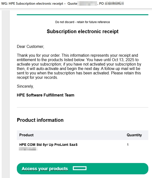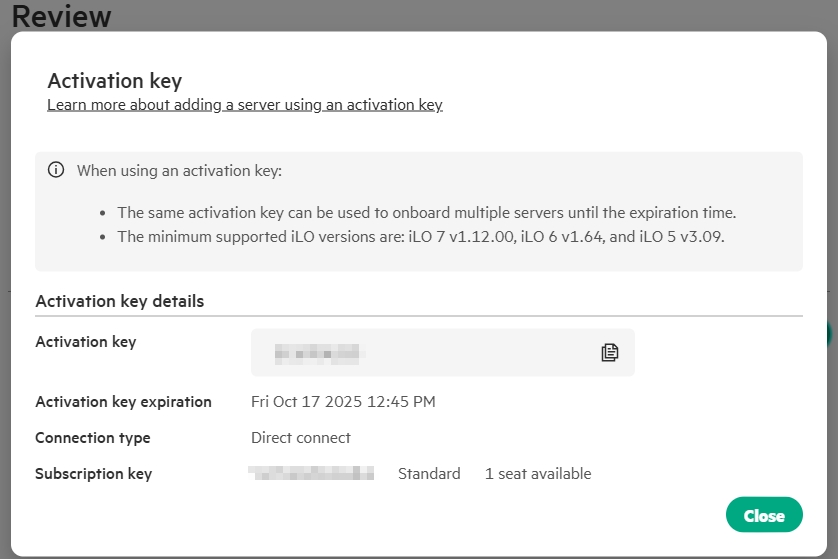 You’ll receive a license key (iLO) or subscription key (COM). I recommend storing these securely.