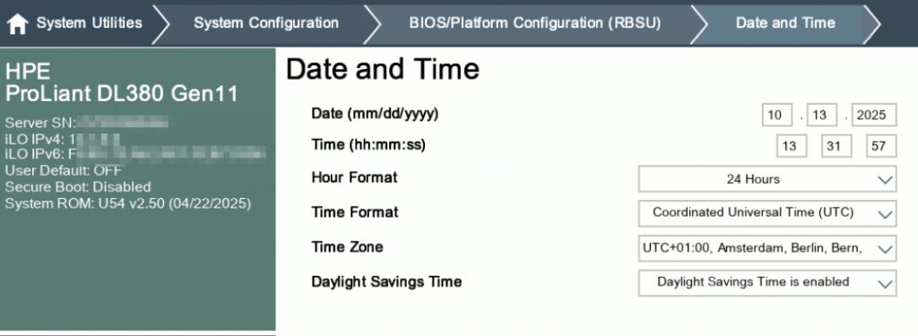 For whatever reason, the iLO’s time setting is not being applied to BIOS.