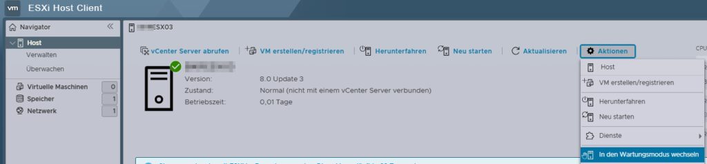 Now it’s time for a ☕break, just wait and do something else. The server will restart automatically at the end, as ESXi is in maintenance mode.