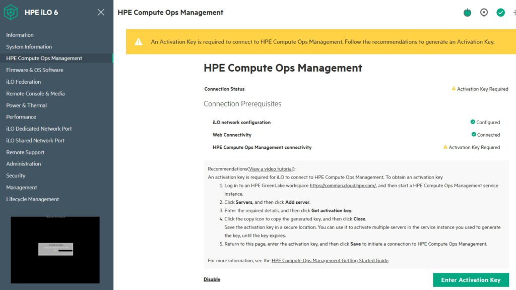 In my case, we can add 3 servers. Enter the copied key in the bottom right corner in iLO COM Section.