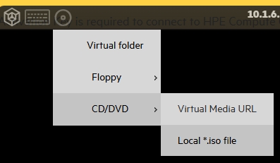 Using the iLO remote console (bottom left), we mount the ISO image of the operating system.