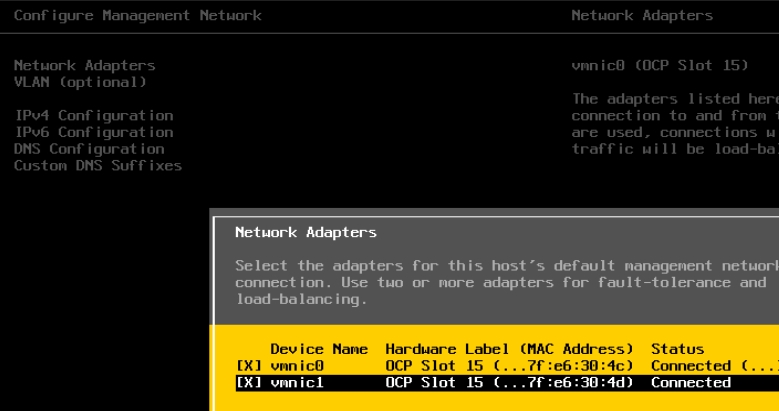 First, we enable both network ports for management.