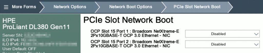Since we don’t want network boot, we disable it: