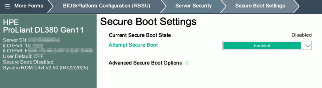 During the reboot, we check the correct profile settings and Secure Boot.