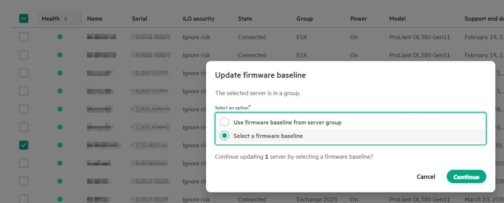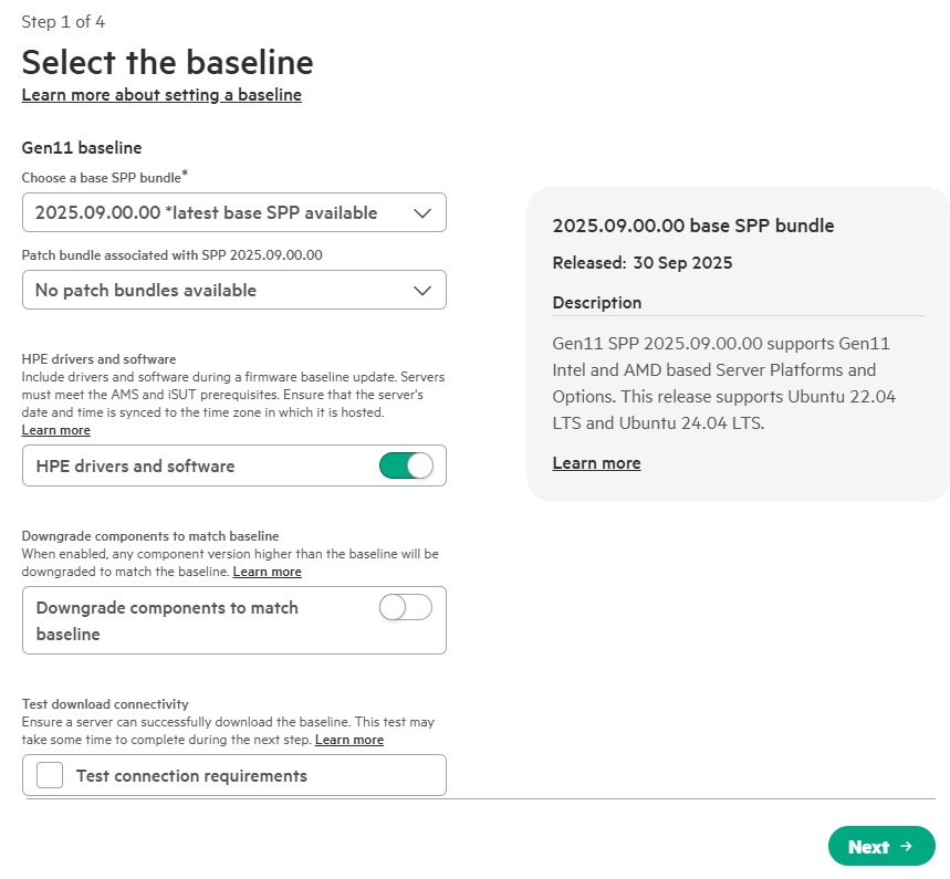 We select „Select a firmware baseline“ and