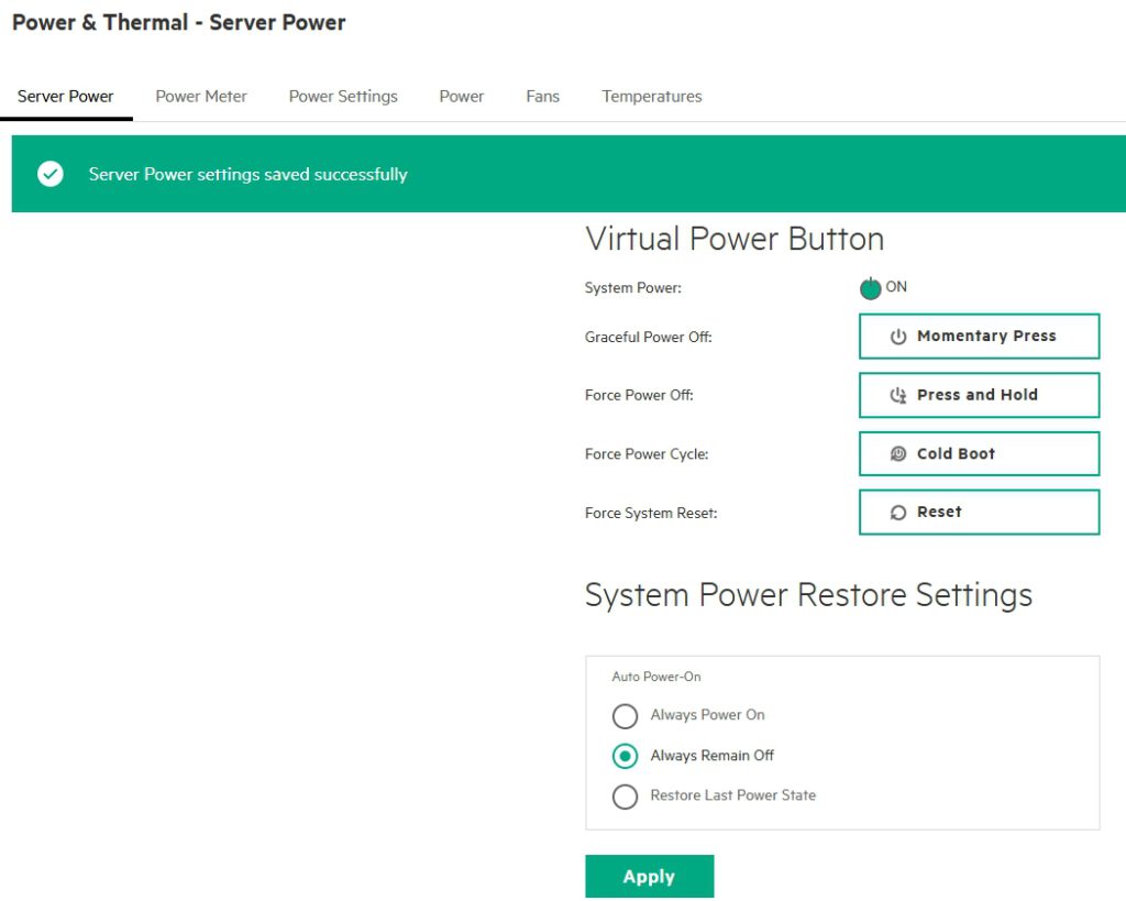 Please don’t forget to restart the iLO (not the server) to apply the settings. The button for this has been somewhat misleadingly labeled „Reset iLO“ for many years. It doesn’t reset the settings, but rather triggers a reboot of the iLO; „Reboot iLO“ would be more appropriate in my opinion.