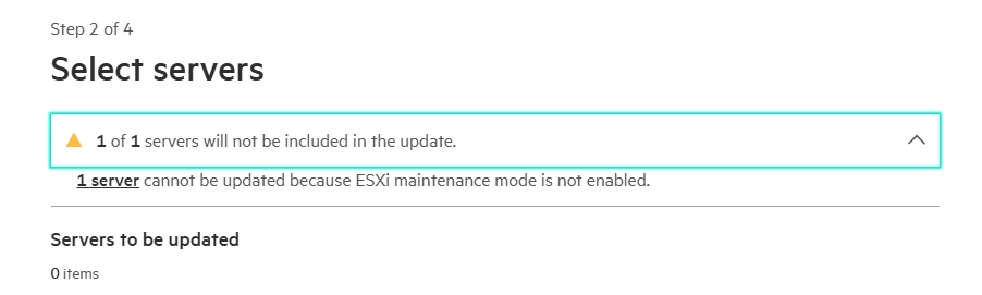 The selected servers are now checked to see if everything is correct, and then the update routine begins. If something is wrong, an error message like this appears: